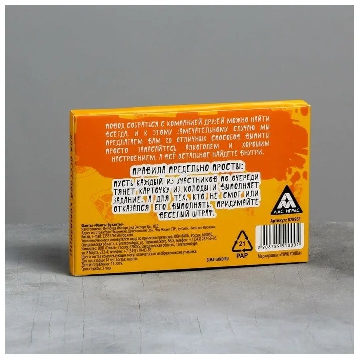 Купить игра для компании "фанты буханты" 20 карт от 100 руб. с доставкой до пункта выдачи в Сергиеве Посаде. Интернет магазин ДекаМаркет. Оплата при получении.